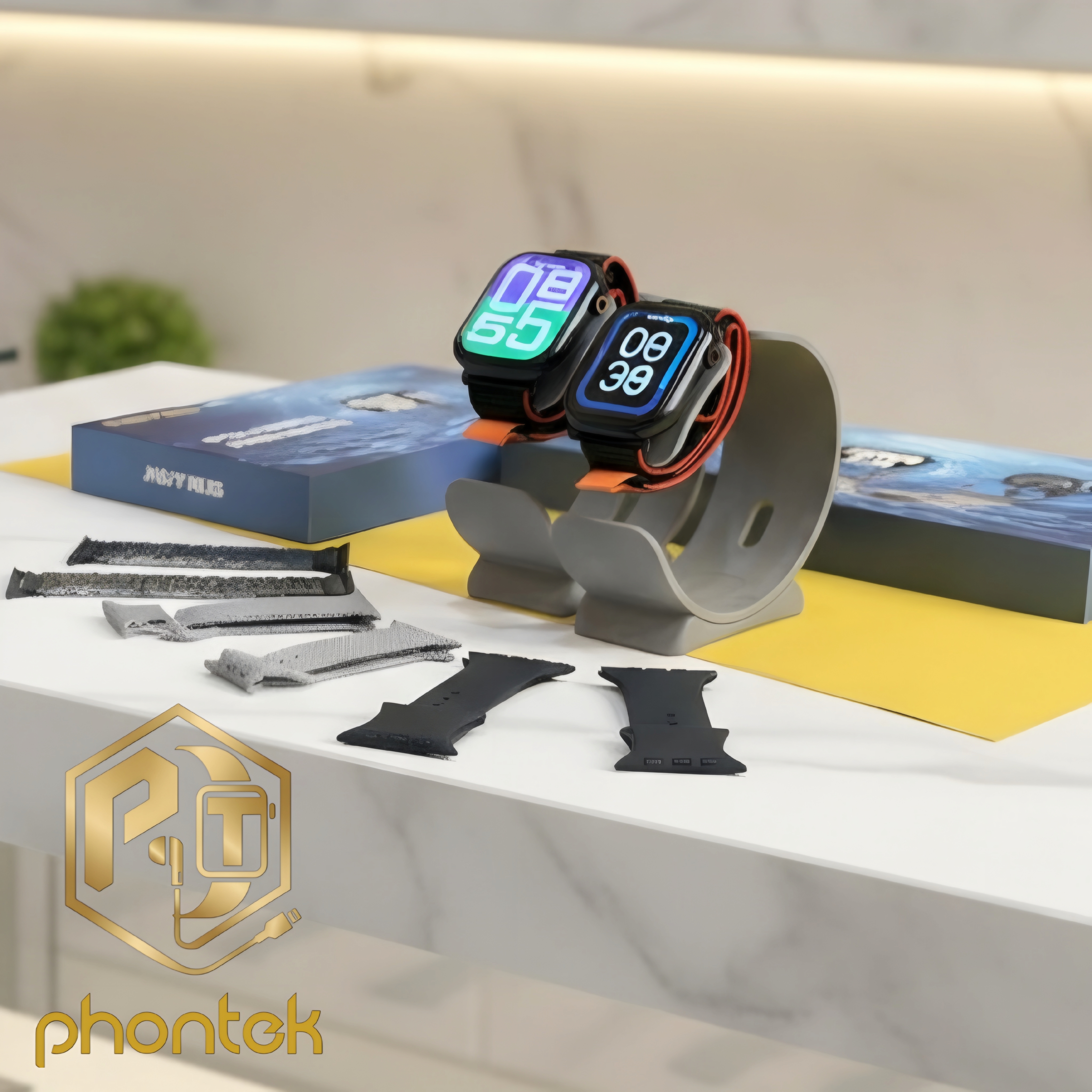 بند سیلیکونی و بند فلزی و یک عدد شارژ بی سیم