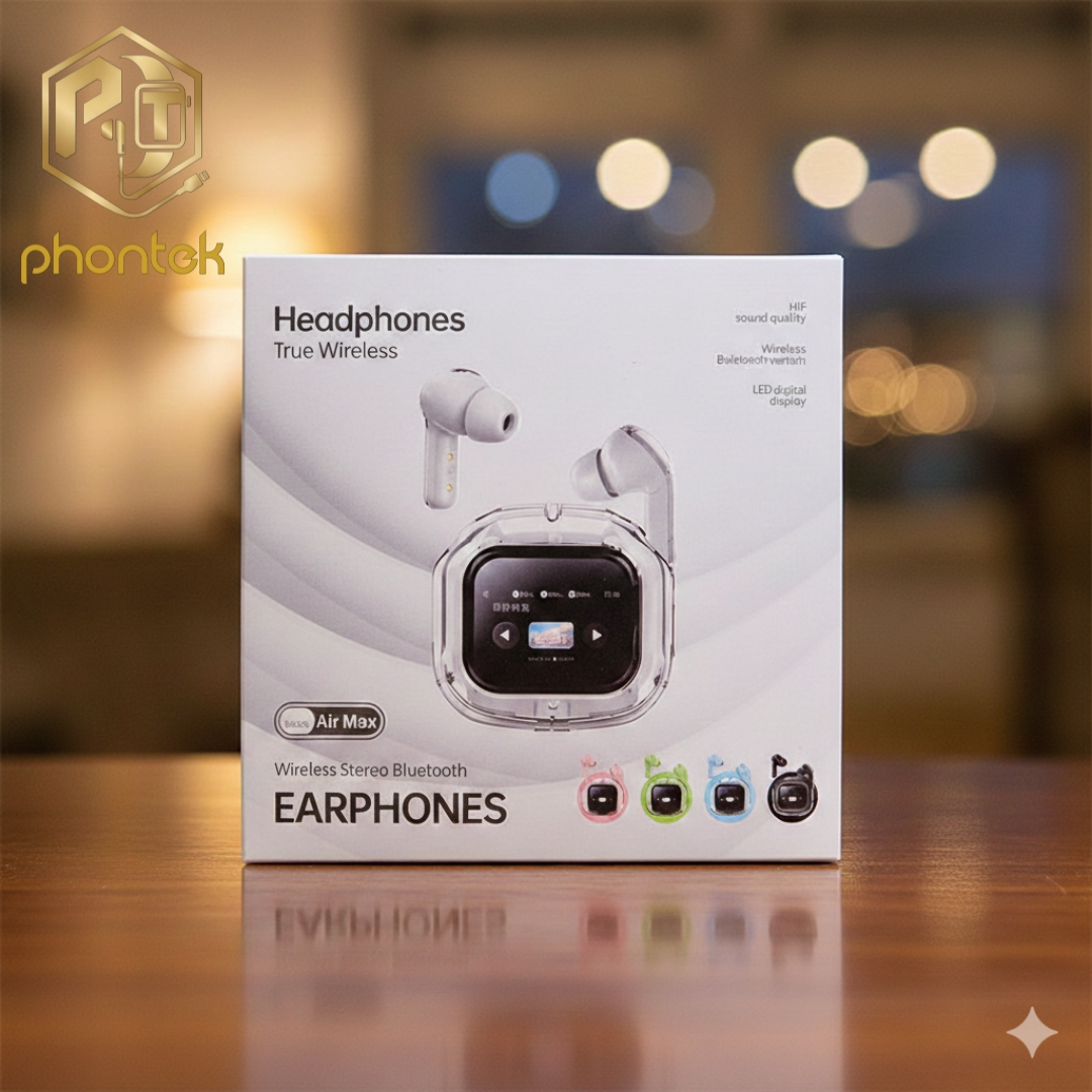 ایرپاد بیسیم ایر مکس با طراحی مدرن و کیس دارای نمایشگر لمسی، تجربهای متفاوت از هدفونهای بیسیم را ارائه میدهد. نمایشگر لمسی روی کیس به شما امکان مشاهده میزان شارژ و مدیریت برخی تنظیمات را میدهد. این مدل با اتصال سریع بلوتوث، کیفیت صدای شفاف HD و بیس مناسب، گزینهای کاربردی برای گوش دادن به موسیقی، مکالمه و استفاده روزمره است.