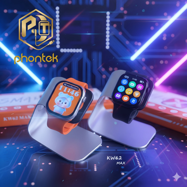ساعت هوشمند KW62 MAX با طراحی مستطیلی و سایز قاب ۴۶ میلیمتر و بدنه آلومینیومی سبک یک انتخاب اقتصادی و کاربردی برای استفاده روزمره، ورزشی و رسمی است. این اسمارتواچ دارای صفحهنمایش لمسی رنگی AMOLED و بند سیلیکونی راحت میباشد که پوشیدن طولانیمدت آن را آسان میکند.